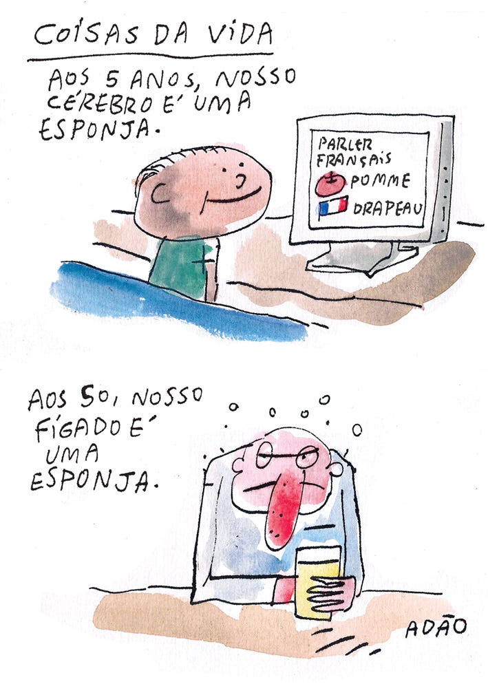 — Vocês não são de nada, não sabem de nada. O órgão mais importante sou eu. Se eu não existisse, ninguém poderia estar aqui enchendo a cara. Garçom, um uísque duplo sem gelo!