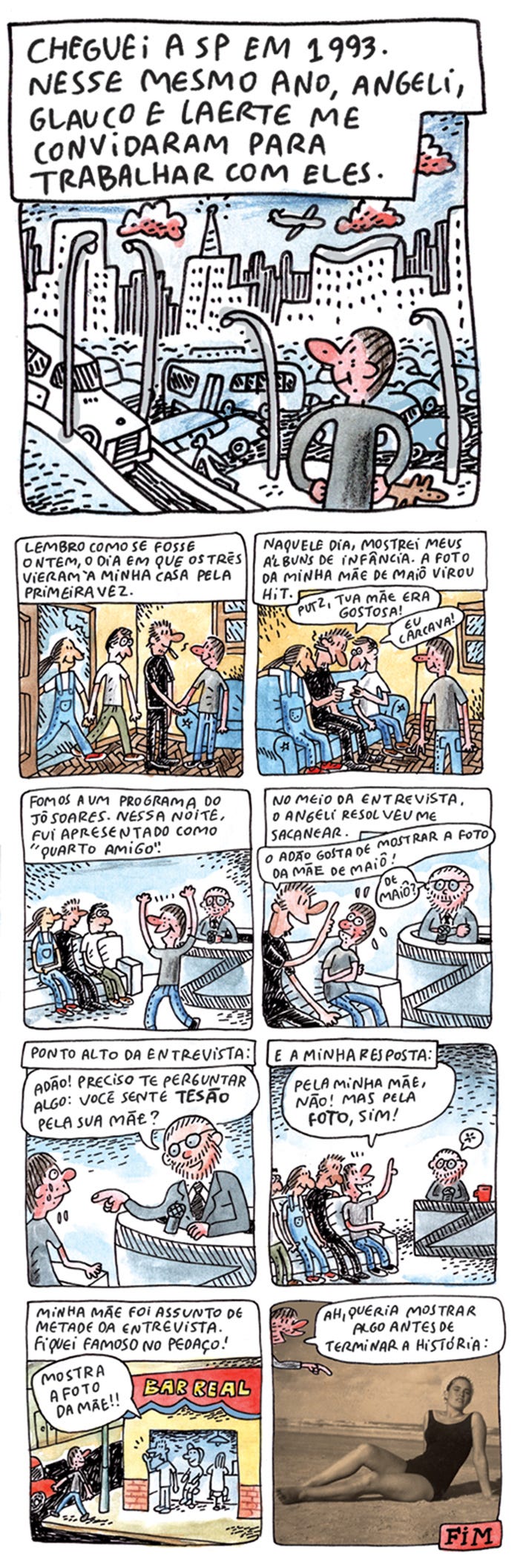 Esta HQ conta alguns grandes momentos da minha mudança para São Paulo em 1993, quando conheci o trio Angeli, Glauco e Laerte e minha primeira aparição no programa do Jô Soares.