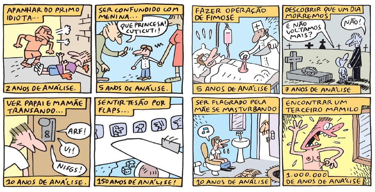 Foi na época da terapia em São Paulo que comecei a madurar a idéia para esta série de tiras. À medida que contava minha vida e os prováveis traumas, começava a calcular quanto tempo teria de ficar no divã para resolver cada um deles.