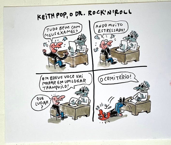 Você vai receber conteúdo inédito todo dia. Além disso, todo mês, no dia 10, ainda concorre ao sorteio de um original, como este aqui do Keith Pop, o Dr. rock’n’roll.