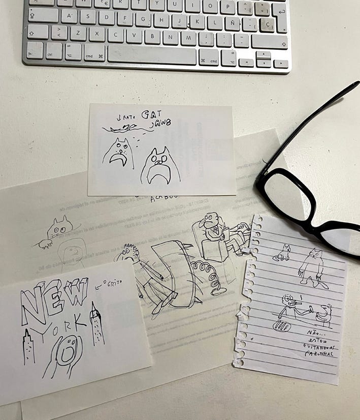 Sobre essa HQ mais longa, só contei pra amigos bem próximos. Mas vou abrir uma exceção: aqui vai o começo. Ainda não tem título.