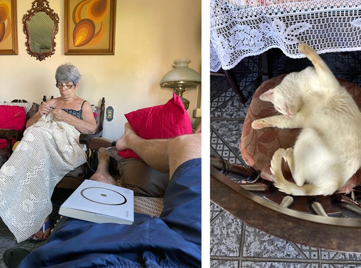 Marila tem sua rotina e a gata compartilha dela: vai para a cama normalmente às nove da noite e só dorme depois de terminar um livro. Sempre com July enroscada em suas pernas.