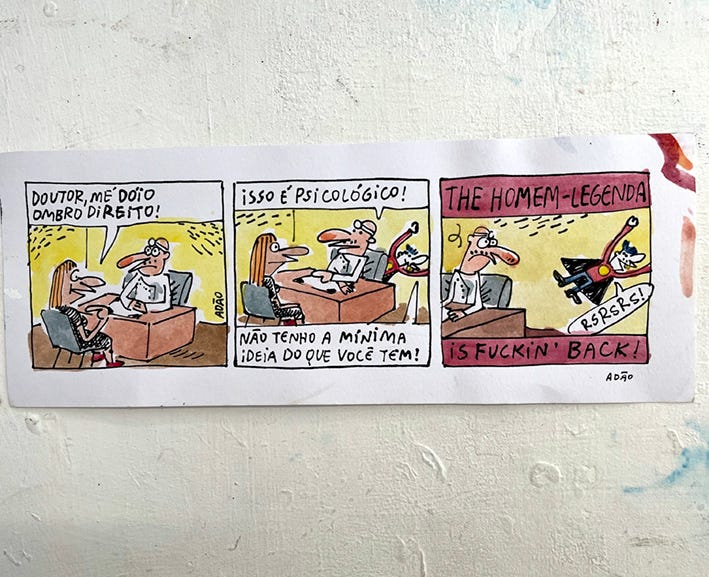 Clique aqui para conhecer minha campanha de financiamento coletivo. Todos os dias duas entregas de conteúdo —cartuns, textos ou tiras—, além de otras cositas más.