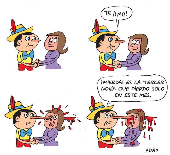Toda semana publico no El Estafador, coletivo de humoristas baseado na Espanha. Desta vez o tema foi “mentiras”.