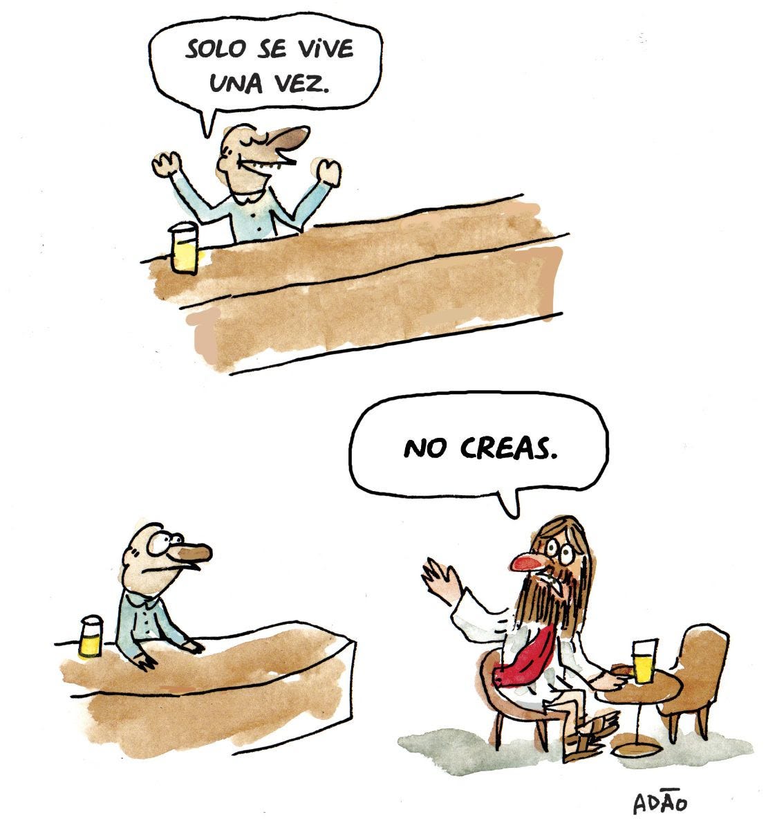 Cartum publicado esta semana no El Estafador, coletivo de desenhistas baseado na Espanha. Rolou a Páscoa e o tema era RESSUSCITAR.