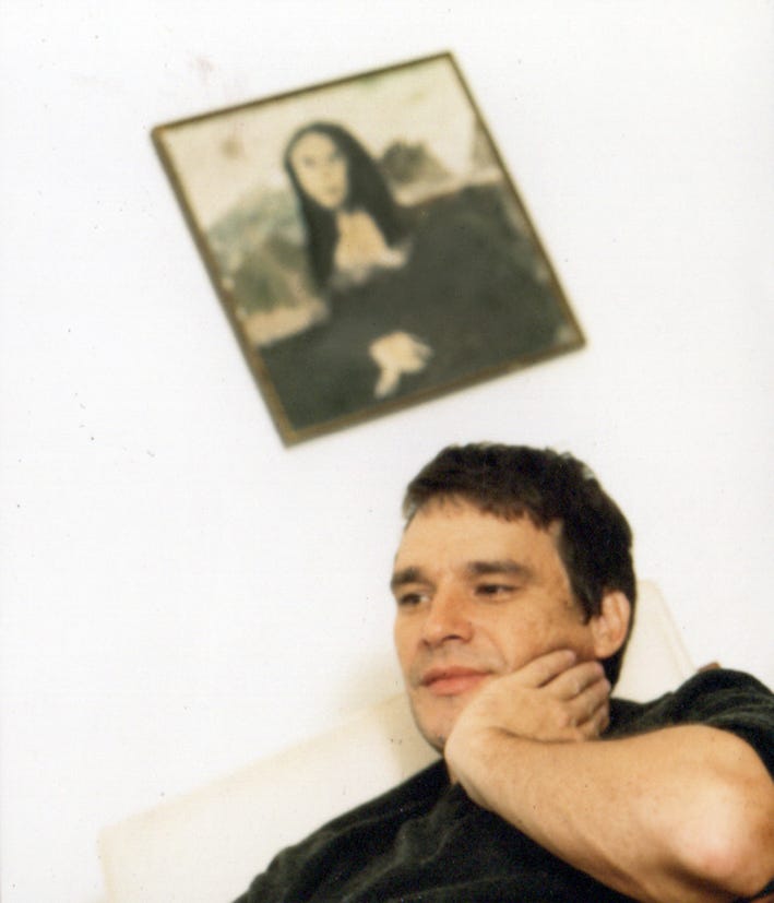 O clique foi na casa do amigo Zed Nesti, em São Paulo, circa 2002. A pintura é do Zed, uma paródia da Mona Lisa. Deus, como amo esse quadro!