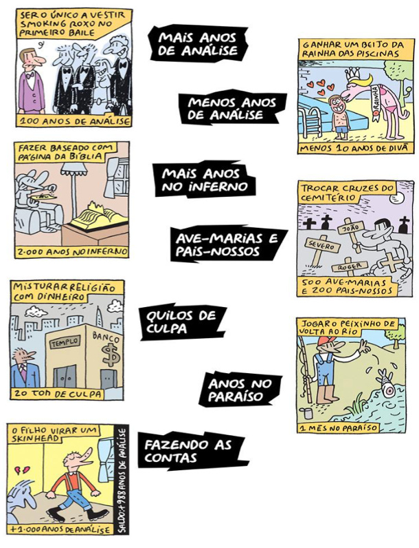 São 87 páginas recheadas de tiras fofas sobre traumas, neuroses e pecados:
